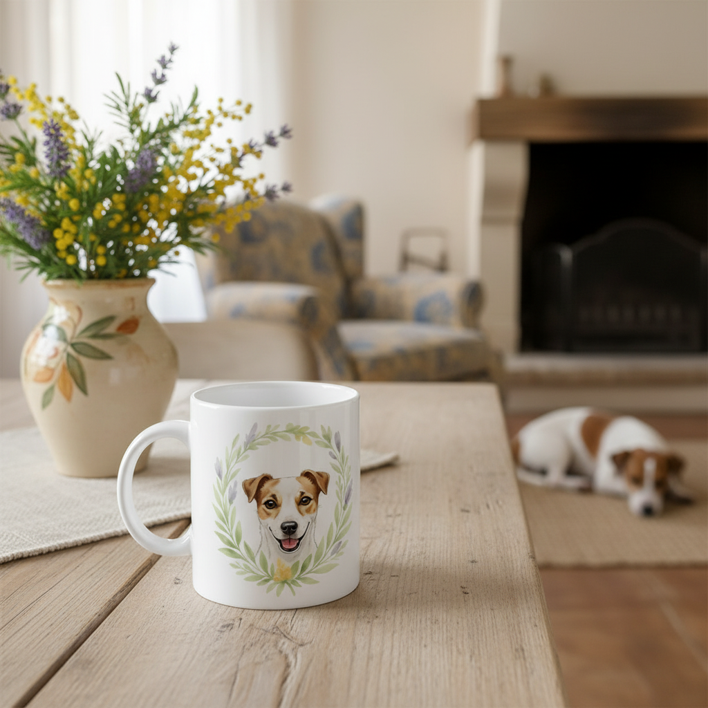 Mug Jack Russell "Dog with Leaf Crown"